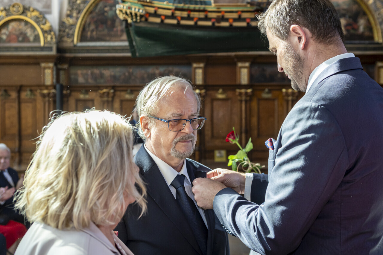 Gdańsk. Piotr Grzelak, Zastępca prezydent Gdańska ds. zrównoważonego rozwoju i gospodarki, wręczył medale za długoletnie pożycie małżeńskie 35 parom, podczas uroczystości, która tradycyjnie odbyła się w zabytkowych wnętrzach Dworu Artusa.