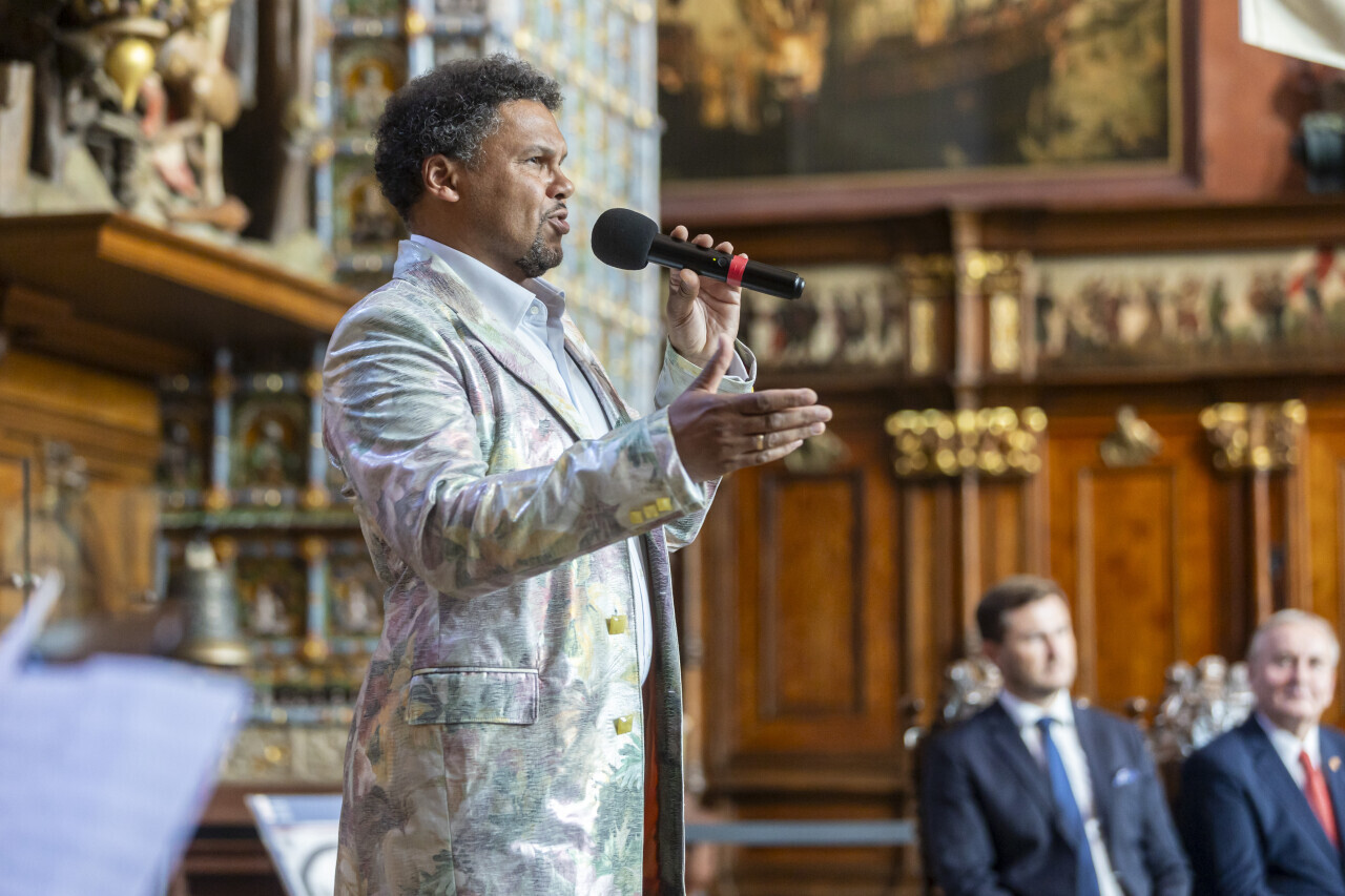Gdańsk. Piotr Grzelak, Zastępca prezydent Gdańska ds. zrównoważonego rozwoju i gospodarki, wręczył medale za długoletnie pożycie małżeńskie 35 parom, podczas uroczystości, która tradycyjnie odbyła się w zabytkowych wnętrzach Dworu Artusa.