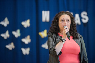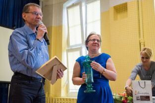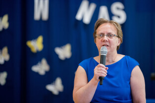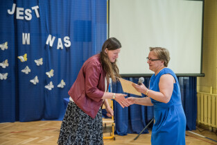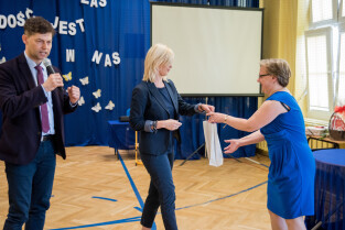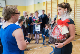 Gdańsk, Aleja Legionów. Obchody Jubileuszu 60-lecia Szkoły Podstawowej nr 49 im. Ks. Bronisława Komorowskiego. Nz. Małgorzata Kosmala (rada rodziców)