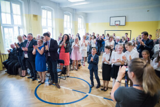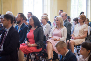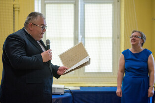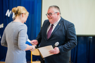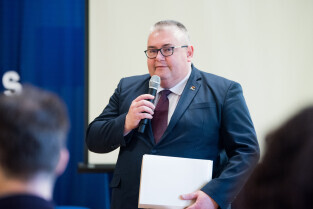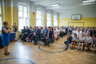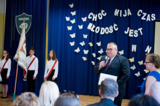Gdańsk, Aleja Legionów. Obchody Jubileuszu 60-lecia Szkoły Podstawowej nr 49 im. Ks. Bronisława Komorowskiego. Nz. Wiceprezydent Gdańska Piotr Kowalczuk