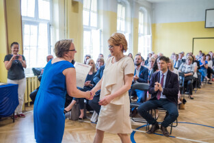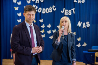Gdańsk, Aleja Legionów. Obchody Jubileuszu 60-lecia Szkoły Podstawowej nr 49 im. Ks. Bronisława Komorowskiego. Nz. Radni Wojciech Błaszkowski i Emilia Lodzińska