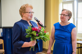 Gdańsk, Aleja Legionów. Obchody Jubileuszu 60-lecia Szkoły Podstawowej nr 49 im. Ks. Bronisława Komorowskiego. Nz. dyrektor szkoły Renata Jurkiewicz