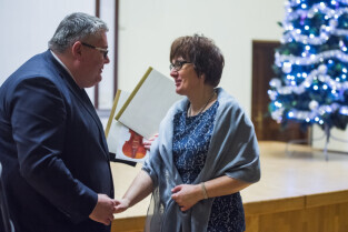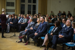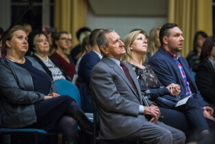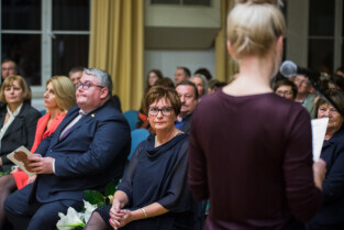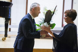 Gdańsk. Akademia Muzyczna. Koncert z okazji Jubileuszu 70-lecia Państwowej Szkoły Muzycznej I stopnia im. H. Wieniawskiego. Nz. Z-ca Prezydenta Gdańska Piotr Kowalczuk