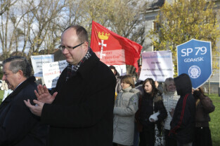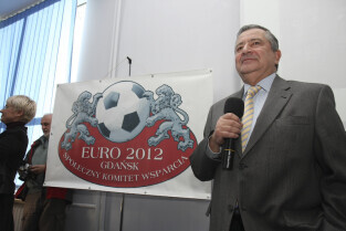 Podpisanie umowów w ramach programu Junior Cup Gdańsk 2012. Gdańsk, Zespół Szkół Budownictwa Okrętowego. Nz. Paweł Adamowicz, Prezydent Gdańska