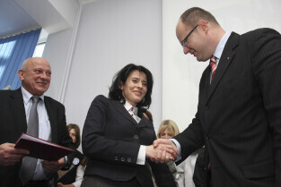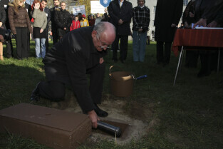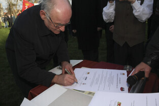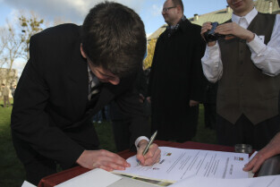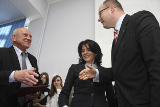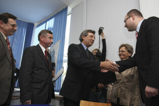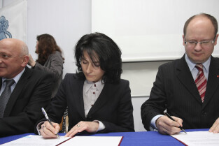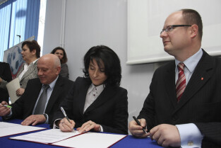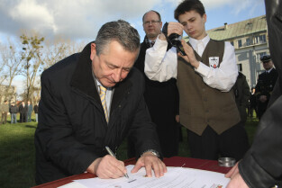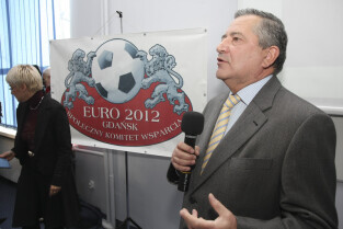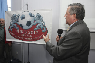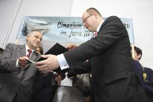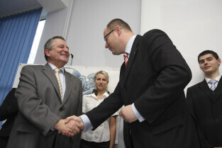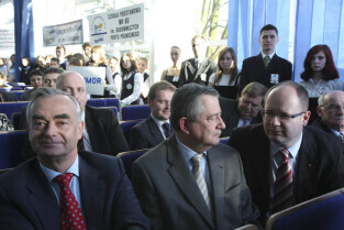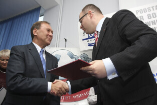 Podpisanie umowów w ramach programu Junior Cup Gdańsk 2012. Gdańsk, Zespół Szkół Budownictwa Okrętowego. Nz. po środku Jan Zarębski