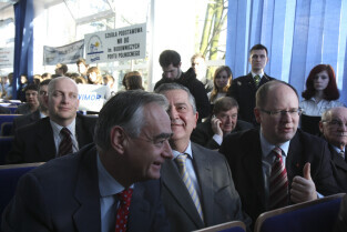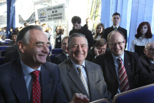 Podpisanie umowów w ramach programu Junior Cup Gdańsk 2012. Gdańsk, Zespół Szkół Budownictwa Okrętowego. Nz. Zbigniew Canowiecki, Prezes Centrostal S.A., Piotr Soyka, Prezes Stoczni Remontowej S.A., Paweł Adamowicz, Prezydent Gdańska