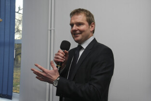 Podpisanie umowów w ramach programu Junior Cup Gdańsk 2012. Gdańsk, Zespół Szkół Budownictwa Okrętowego. Nz. Marcin Herra, Prezes spółki PL.2012