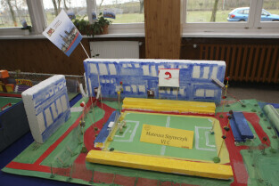 Junior Euro 2012. Podpisanie umów ze sponsorami na modernizację boisk przyszkolnych. Nz. makieta nowego boiska