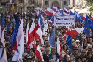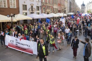 Nie! Łamaniu Konstytucji. Marsz Wkurzonych organizowanych przez Komitet Obrony Demokracji na trasie Pl. Solidarności - Zielona Brama