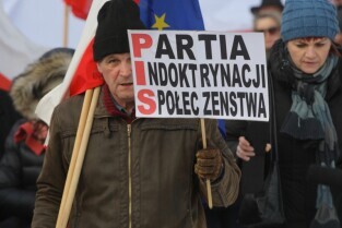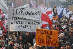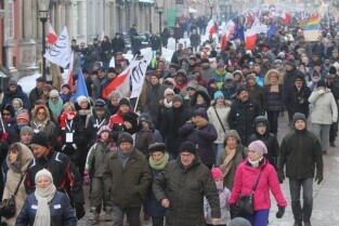 KOD po raz czwarty manifestował w Gdańsku pod hasłami ochrony obywateli przed działaniem ustaw naruszających ich wolność. Nz Aleksander Hall.