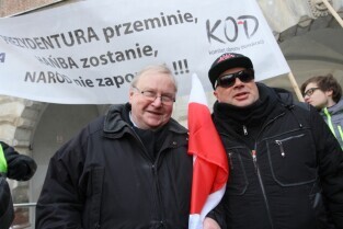 KOD po raz czwarty manifestował w Gdańsku pod hasłami ochrony obywateli przed działaniem ustaw naruszających ich wolność. Nz Aleksander Hall i Krzysztof Skiba.
