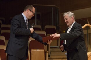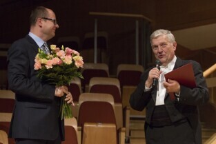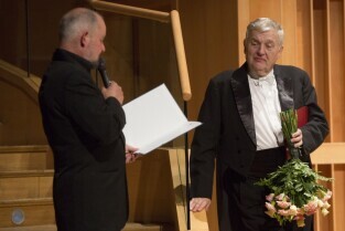 Koncert Konstantego Andrzeja Kulki z okazji 50-lecia pracy twórczej, podczas którego wybitny skrzypek otrzymał Nagrodę Prezydenta Miasta Gdańska w Dziedzinie Kultury. Gdańsk, Polska Filharmonia Bałtycka