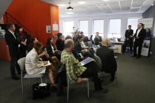Konferencja prasowa połączona z prezentacją działalności i najnowszego oprogramowania "Evolve" firmy Kainos, działającej w sektorze IT. Gdańsk, CH Madison. Nz. Prezes InvestGDA (Gdańska Agencja Rozwoju Gospodarczego) Alan Aleksandrowicz