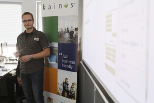 Konferencja prasowa połączona z prezentacją działalności i najnowszego oprogramowania "Evolve" firmy Kainos, działającej w sektorze IT. Gdańsk, CH Madison.