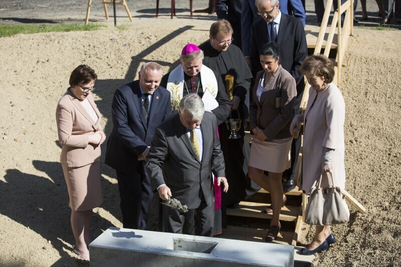 Uroczystość wmurowania kamienia węgielnego pod budowę Centrum Medycyny Nieinwazyjnej z udziałem Premier RP Ewy Kopacz. Gdańsk, Uniwersytet Medyczny. Nz. Marszałek Senatu RP Bogdan Borusewicz