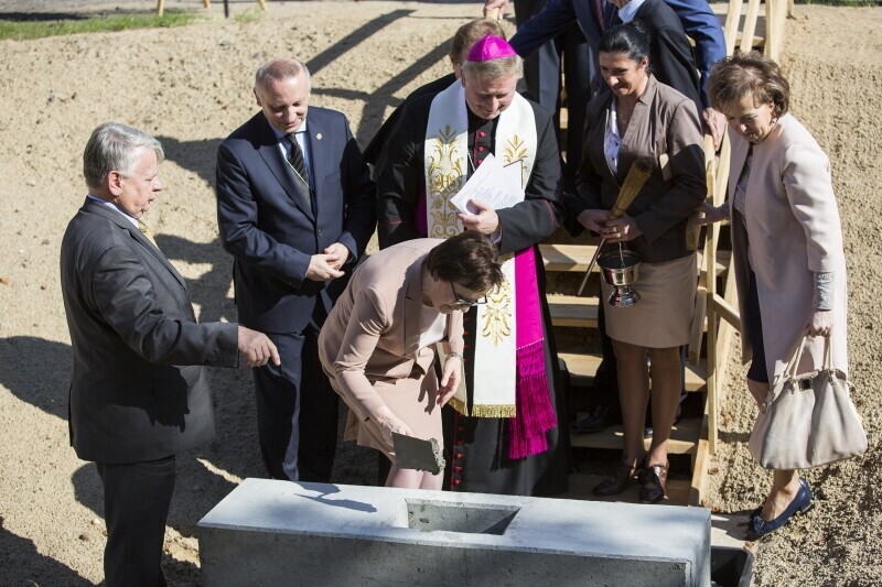 Uroczystość wmurowania kamienia węgielnego pod budowę Centrum Medycyny Nieinwazyjnej z udziałem Premier RP Ewy Kopacz (nz). Gdańsk, Uniwersytet Medyczny