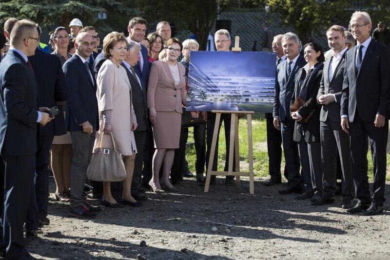 Uroczystość wmurowania kamienia węgielnego pod budowę Centrum Medycyny Nieinwazyjnej z udziałem Premier RP Ewy Kopacz. Gdańsk, Uniwersytet Medyczny
