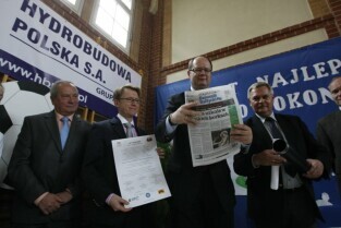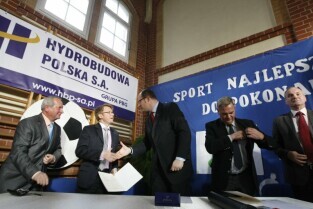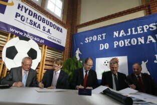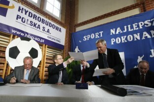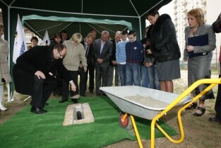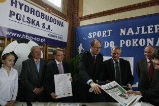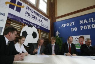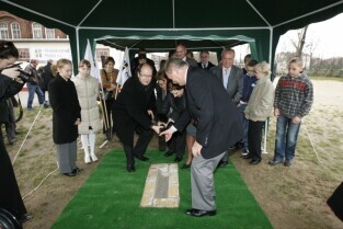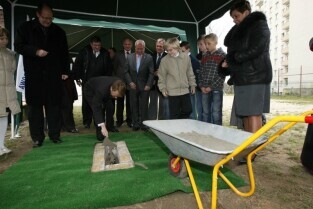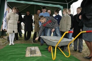 Podpisanie listu erekcyjnego i wmurowanie kamienia węgielnego pod budowę boiska w Szkole Podstawowej nr 4 w Gdańsku przy ul. Łąkowej, w ramach projektu Junior Gdańsk 2012