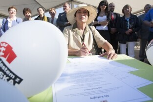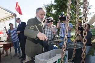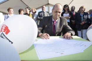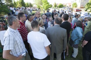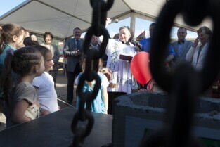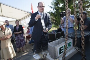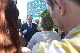 Uroczystość wmurowania kamienia węgielnego pod budowę szkoły na gdańskich Karczemkach (Kokoszkach) połączone ze spotkaniem Prezydenta Gdańska Pawła Adamowicza z mieszkańcami osiedla w ramach cyklu "Mój dom, moja dzielnica, moje miasto"