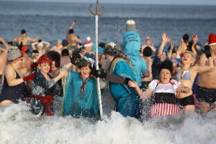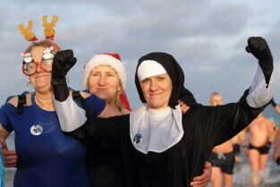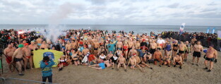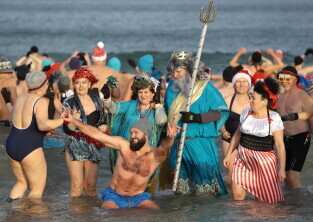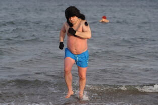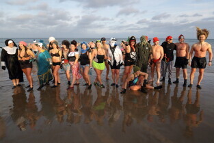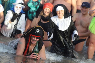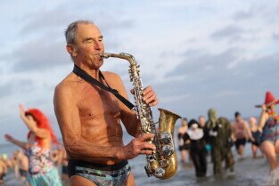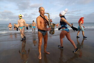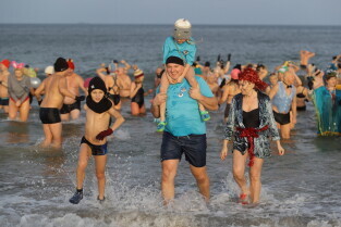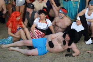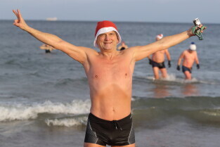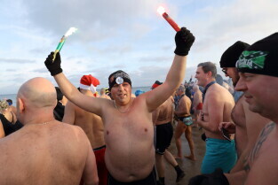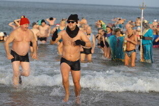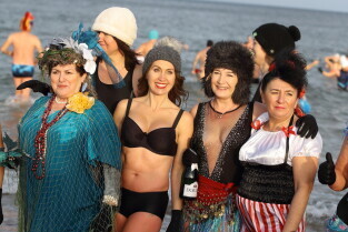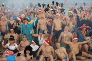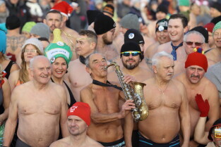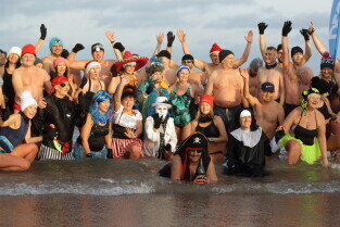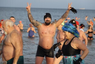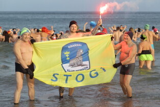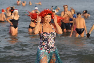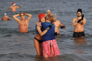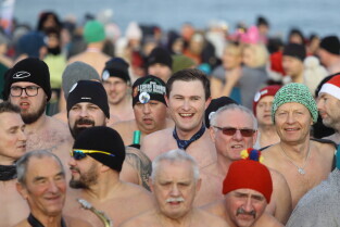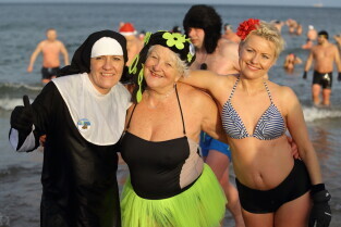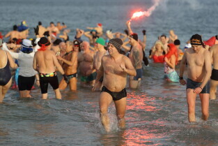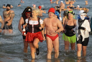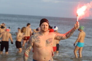 Gdańsk Jelitkowo. Lodowata kąpiel morsów na przywitanie Nowego Roku.