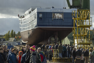 Karstensen Shipyard Poland. Wodowanie statku rybackiego Chris Andra