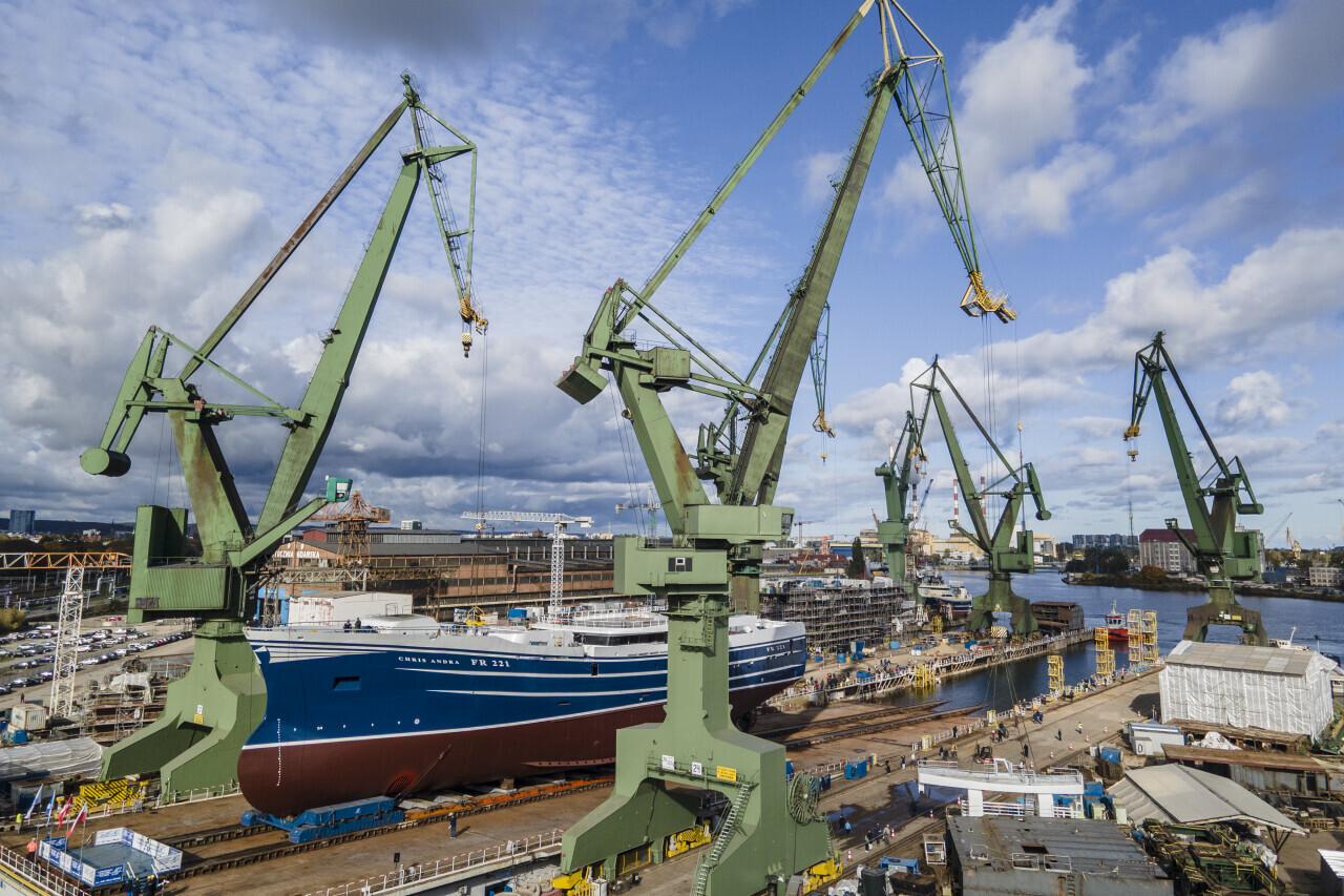 Karstensen Shipyard Poland. Wodowanie statku rybackiego Chris Andra