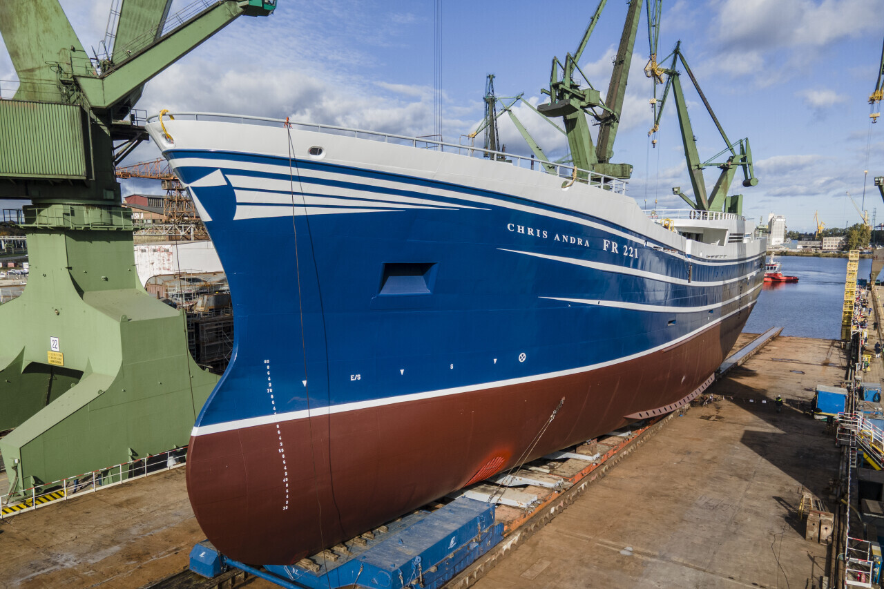 Karstensen Shipyard Poland. Wodowanie statku rybackiego Chris Andra