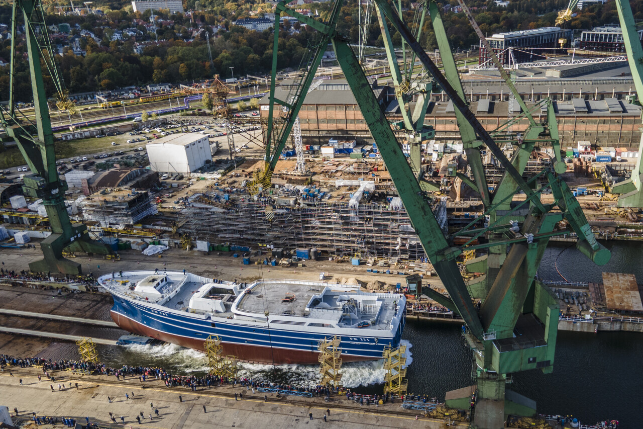 Karstensen Shipyard Poland. Wodowanie statku rybackiego Chris Andra