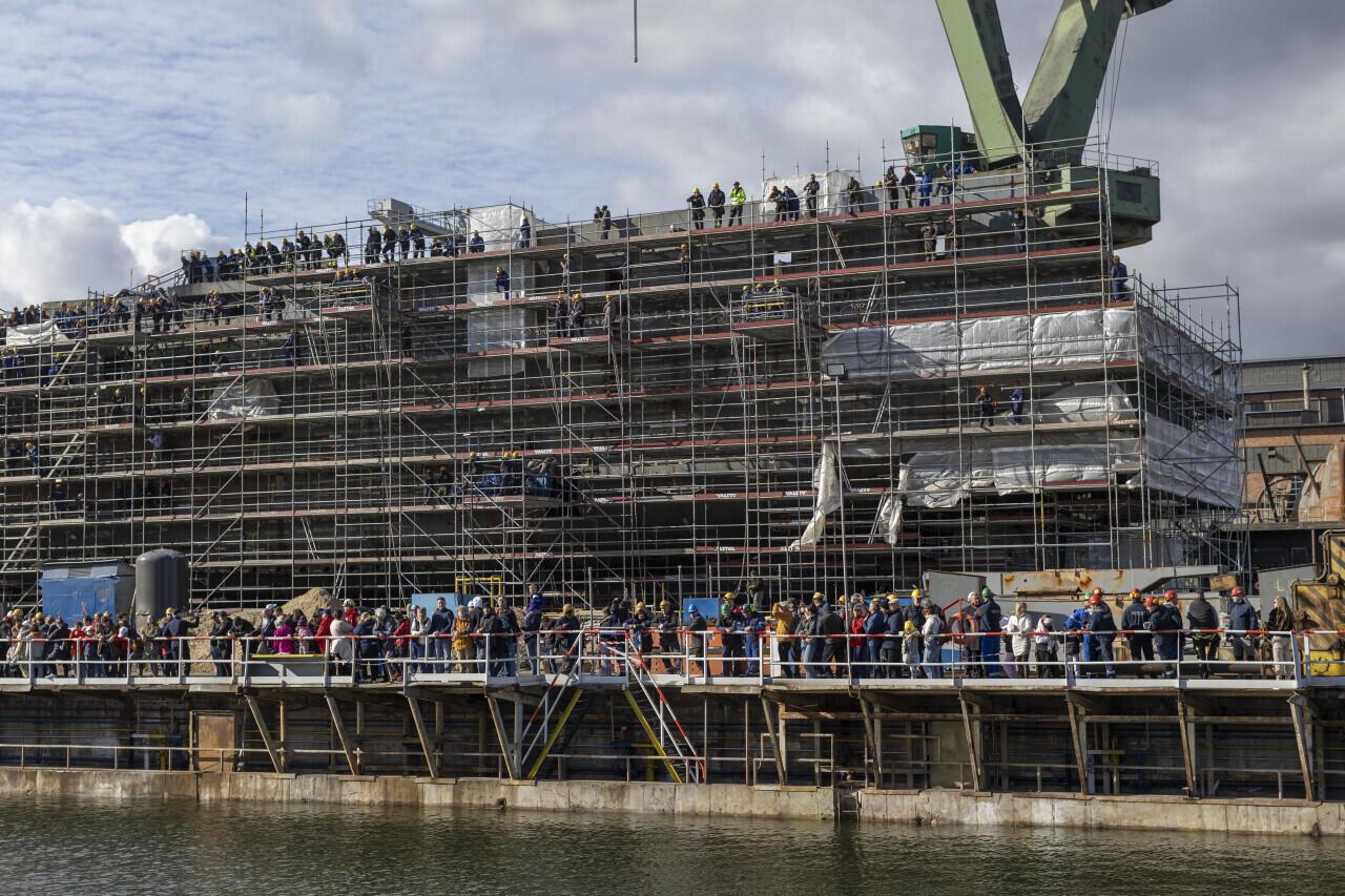 Gdańsk, Karstensen Shipyard Poland. Wodowanie statku rybackiego Chris Andra (numer budowy 489).