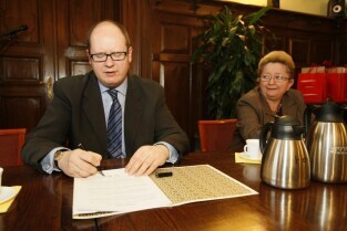 Spotkanie Prezydenta Gdańska Pawła Adamowicza i jego z-cy Ewy Kamińskiej oraz przedstawicieli gdańskiego oddziału Związku Dużych Rodzin 3 Plus, podczas którego podpisane zostało zarządzenie Prezydenta Miasta Gdańska dotyczące utworzenia Karty Dużej Rodziny, upoważniającej do zniżek na terenie miasta dla rodzin wielodzietnych.