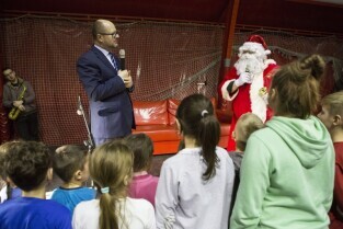 IV finał akcji "Każdy może pomóc". Gdańsk, Centrum Nauki i Sportu Gedania 1922 przy al. Hallera. Nz. Prezydent Gdańska Paweł Adamowicz