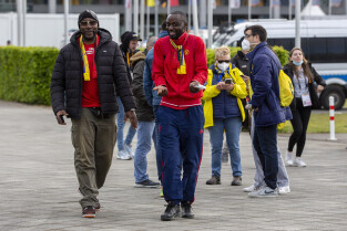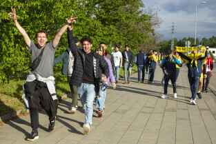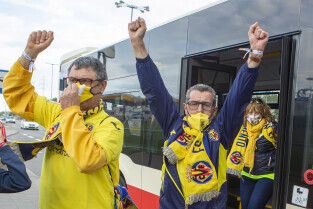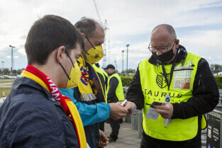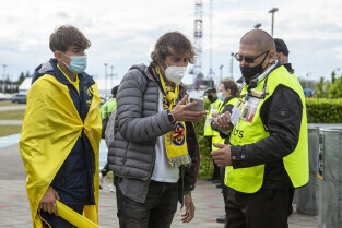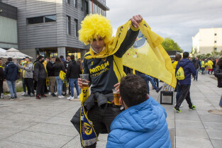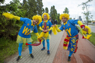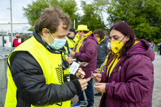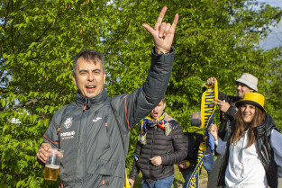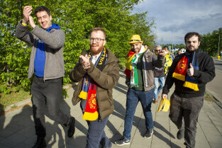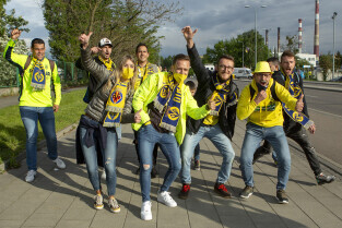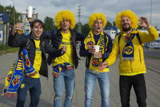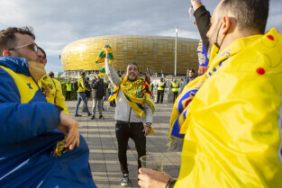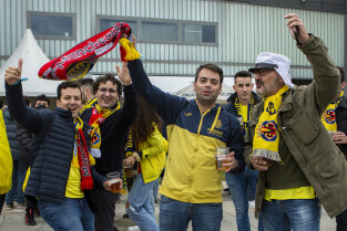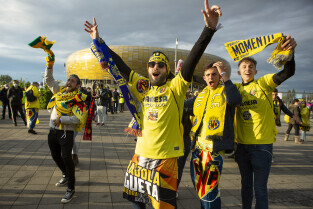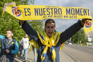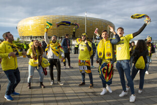Kibice Villarreal i Manchesteru pod stadionem Polsat Plus Arena Gdańsk przed meczem Finału Ligi Europy UEFA