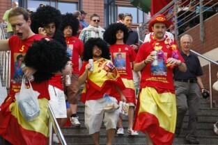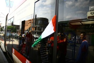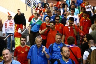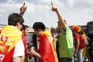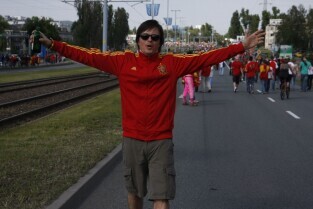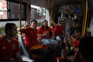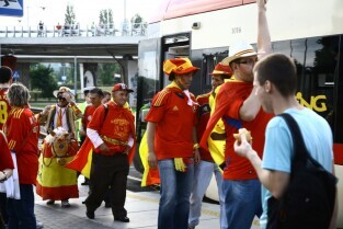 Rozśpiewany korowód kibiców podąża na stadion gdański , na którym zostanie rozegrany pierwszy pojedynek EURO 2012 w Gdańsku.