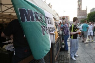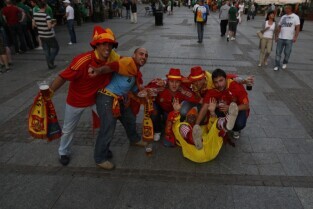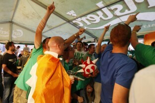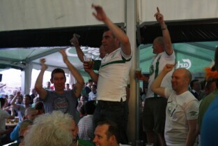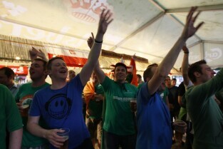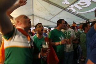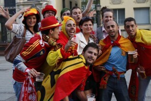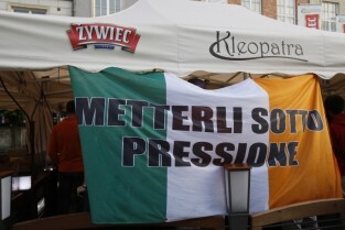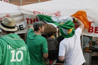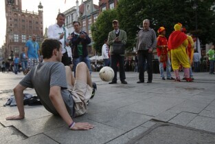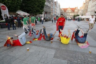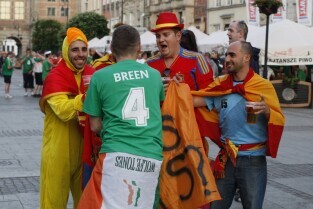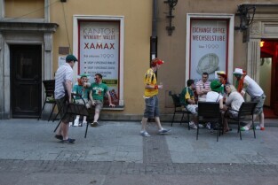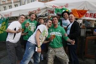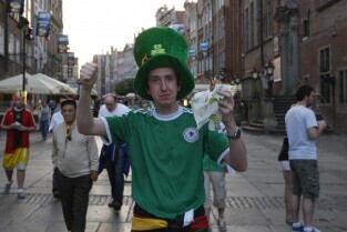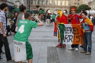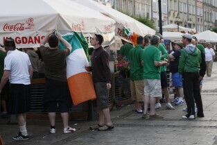 Kibice z Irlandii i Hiszpanii na ulicach Gdańska w przeddzień meczu obu drużyn na gdańskim stadionie. Gdańsk, Główne Miasto