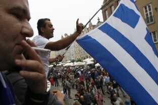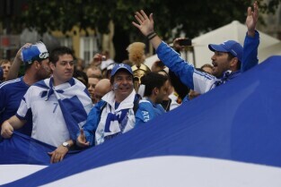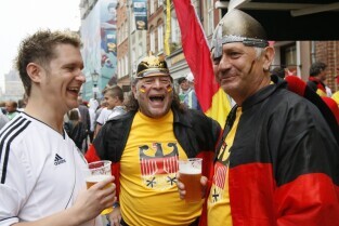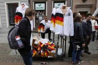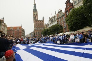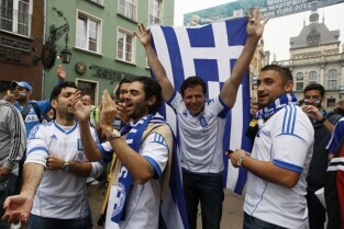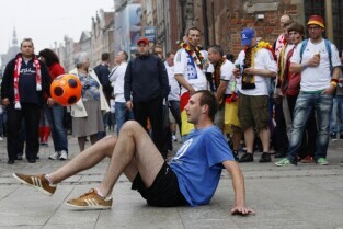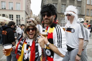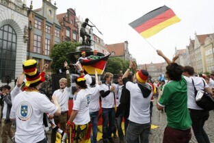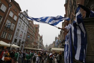 Kibice na Głównym Mieście w Gdańsku przed meczem ćwierćfinałowym Grecja-Niemcy podczas UEFA Euro 2012