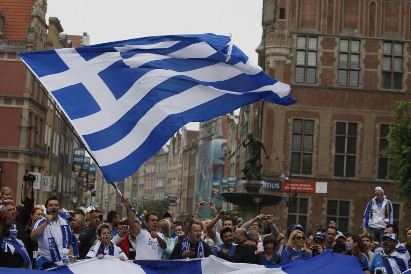 Kibice na Głównym Mieście w Gdańsku przed meczem ćwierćfinałowym Grecja-Niemcy podczas UEFA Euro 2012
