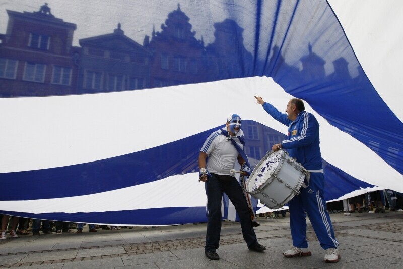 Kibice na Głównym Mieście w Gdańsku przed meczem ćwierćfinałowym Grecja-Niemcy podczas UEFA Euro 2012