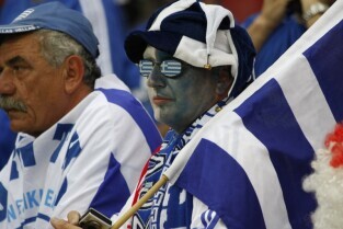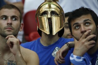 Polscy i greccy kibice podczas meczu otwarcia na Stadionie Narodowym w Warszawie.
