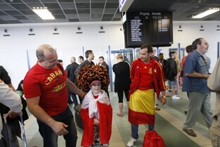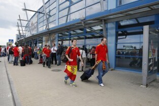 Port Lotniczy im. Lecha Wałęsy w Gdańsku. Przylot kibiców do Gdańska na piłkarskie mistrzostwa UEFA Euro 2012.