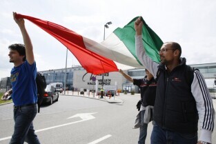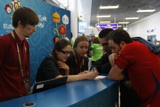 Port Lotniczy im. Lecha Wałęsy w Gdańsku. Przylot kibiców do Gdańska na piłkarskie mistrzostwa UEFA Euro 2012.