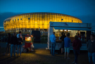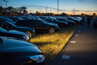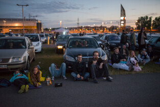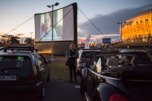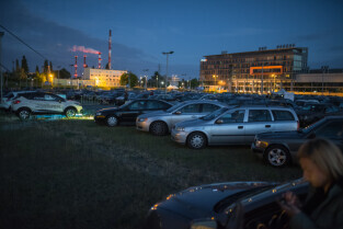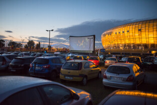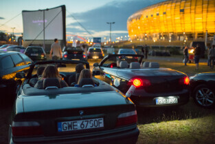Gdańsk. Kino Samochodowe przy Stadionie Energa Gdańsk. Seans filmowy był częścią 20. Festiwalu Filmów Kultowych