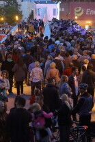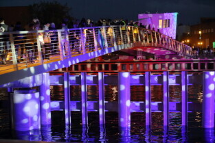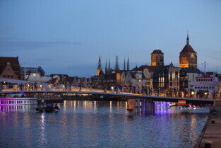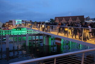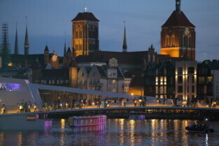 Gdańsk. Otwarcie nowego gdańskiego mostu. Uroczystość rozpoczęła się na Ołowiance, na parkingu Filharmonii Bałtyckiej. To stąd mieszkańcy, w towarzystwie uroczystych fanfar, przeszli po raz pierwszy po kładce.