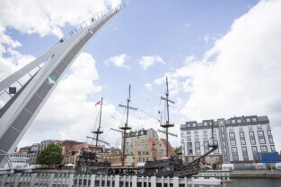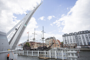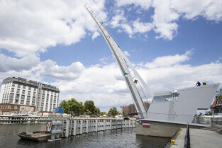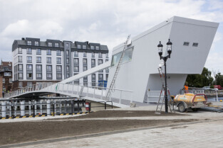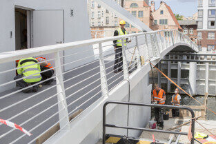 Gdańsk. Ostatnie prace budowlane Kładki nad Motławą