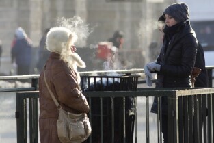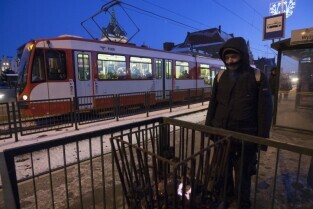 Koksowniki w centrum Gdańska ustawione w okolicy przystanków komunikacji miejskiej ogrzewają przemarzniętych pasażerów. Na zdjęciu przystanek tramwajowy Brama Wyżynna