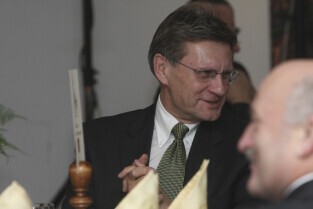 Kolacja inaugurująca obrady Konferencji Solidarność dla Przyszłości. Gdańsk, Centralne Muzeum Morskie. Nz. Jerzy Buzek