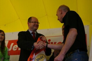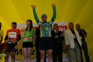 Gdańskie Kolarskie Kryterium Uliczne o Puchar Prezydenta Gdańska. Nz. zwycięzca wyścigu Tomasz Kiendyś z CCC Polsat Polkowice i Prezydent Gdańska Paweł Adamowicz