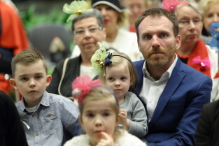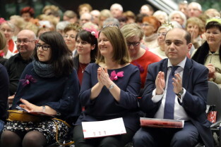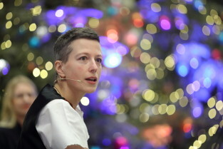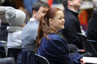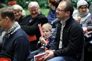 Gdańsk. Kolędowanie w Europejskim Centrum Solidarności. Nz. Wiceprezydent Gdańska Aleksandra Dulkiewicz z córką i Magdalena Mistat-ECS.
