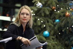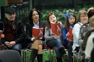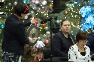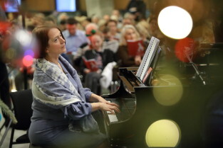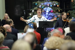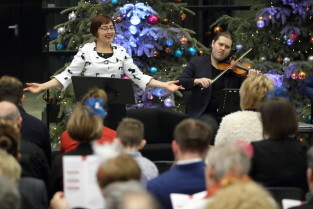 Gdańsk. Kolędowanie w Europejskim Centrum Solidarności. Nz. Aleksandra Kucharska-Szefler.