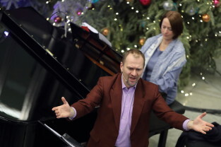 Gdańsk. Kolędowanie w Europejskim Centrum Solidarności. Nz. Jakub Kornacki i Witosława Frankowska.