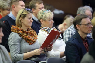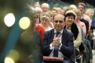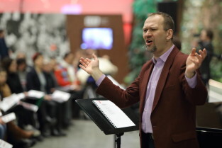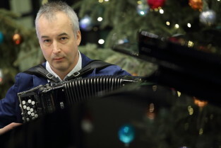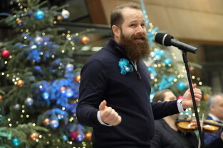 Gdańsk. Kolędowanie w Europejskim Centrum Solidarności. Nz. Cezary Paciorek.